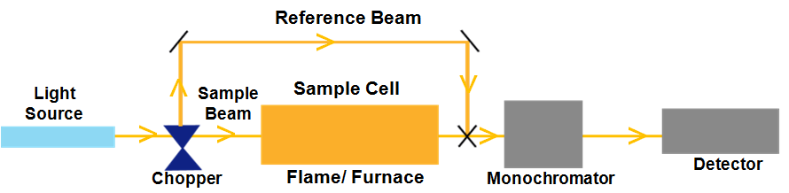 单束光谱仪需要辐射直接通过雾化样品。然而,双光束光谱仪需要两束光——一束直接穿过样品,另一束根本不穿过样品。