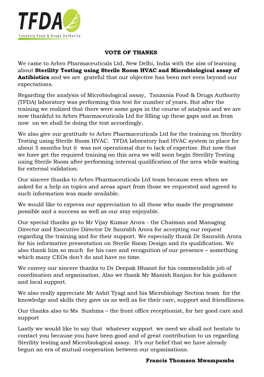 我们于2015年9月15日至25日在新德里的微生物学部为来自坦桑尼亚食品药品管理局的两位学员(Mr. Francis Thomson Mwampamba和Ms . Mwanamvua Ridhiwani Ngena)安排了现场培训。